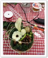 Réalisations des participantes aux ateliers floraux du marché de Noël de Sierck-les-bains.