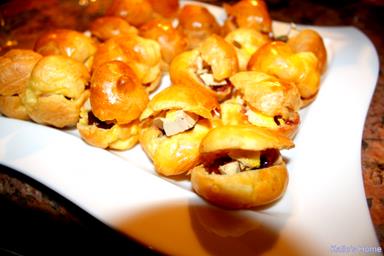 Préchauffez le four à chaleur tournante sur th.6 (180°). Portez à ébullition l'eau dans une casserole avec le sel, le sucre et le beurre. Aux premiers bouillons, ajoutez la farine d'un coup, remuez vivement jusqu'à ce que la pâte se dessèche et se détache des parois. Transvasez la pâte dans un saladier, incorporez-y les oeufs un par un en fouettant vivement entre chaque ajout et jusqu'à ce que la pâte soit bien lisse. Posez des tas de pâte espacés de la taille d'un petit oeuf sur la plaque couverte d'un papier cuisson . Dorez au jaune d'oeuf et cuisez 30 minutes. Laissez refroidir sur une grille. Faites cuire les figues taillées en dés, 15 minutes dans le banyuls à feu doux et laissez refroidir. Au moment de servir , taillez le foie gras en dés . Coupez un chapeau aux choux et garnissez-les de figues et de foie gras, poudrez de fleur de sel, poivrez au moulin et replacez le chapeau.