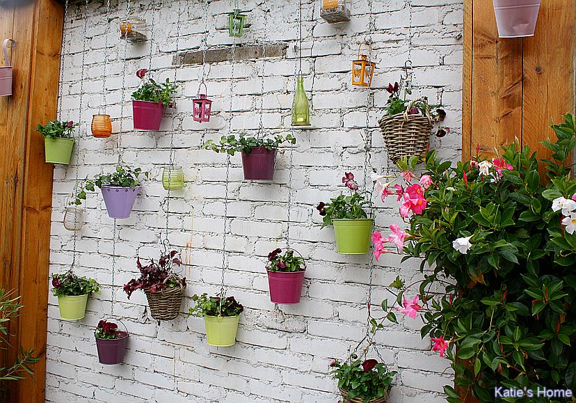 Mur végétal Mon Mur Végétal 2012 |  Après avoir cherché quelques jours sur internet comment faire un mur végétal extérieur, j'ai abandonné en voyant le prix de la sphaigne (qui est nécessaire pour un mur végétal). J'ai eu l' idée des seaux accrochés au mur et mon petit mari Yannic a fait la conception de l'encadrement en bois de charpente et l'installation des chaînes!!! Résultat très sympa et très facile de changer de couleurs, de plantes et de disposition en fonction de la pousse des plantes !!!