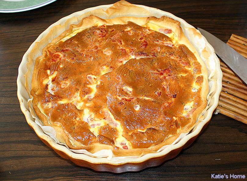 Préchauffez le four à 200°C , déroulez la pâte brisée et la placer dans un plat à tarte. Déposez les lardons sur la pâte. Dans un shaker mettez les oeufs et la crème fraîche avec un peu de sel (pas trop les lardons sont déjà salés) du poivre et les herbes. Secouez vivement et versez sur les lardons puis enfournez pour 40 minutes!